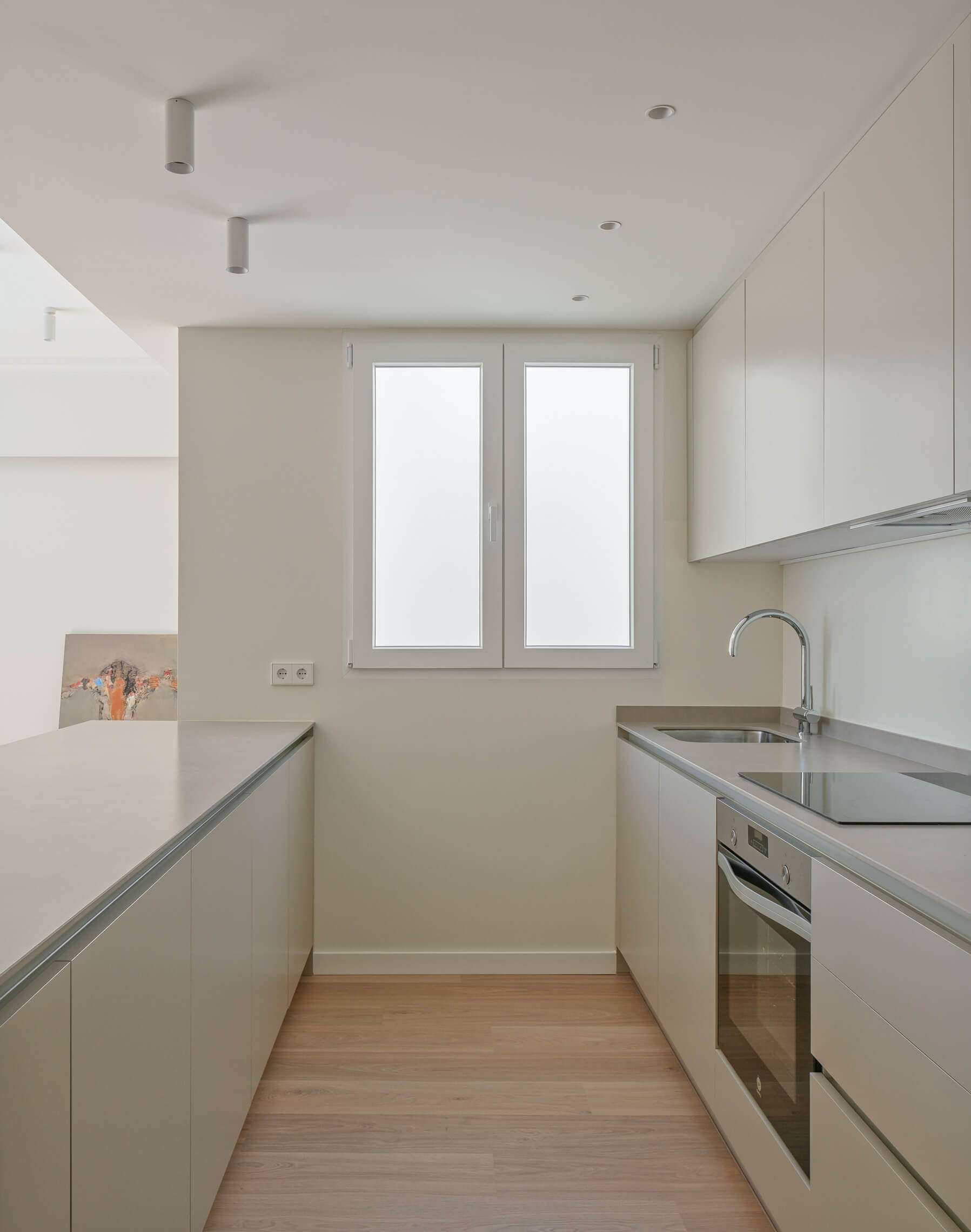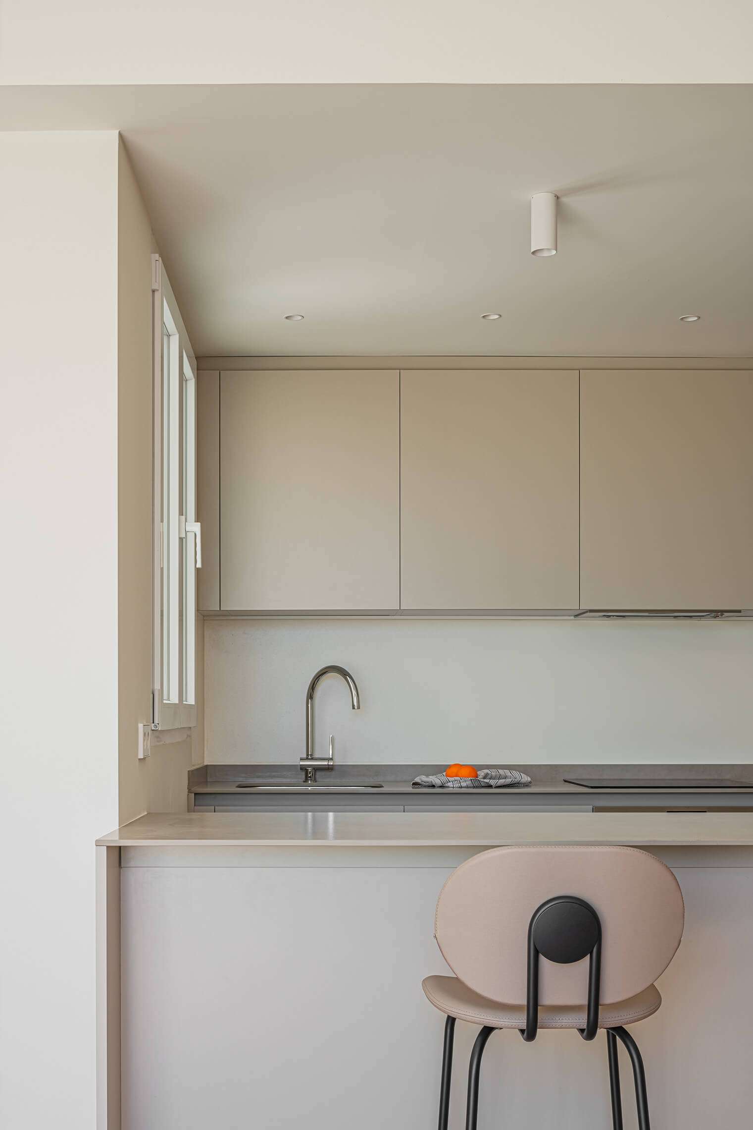 La intervención potencia la altura, incorpora elementos estructurales vistos y apuesta por una paleta en tonos arena y materiales continuos que refuerzan la amplitud. El resultado es un espacio equilibrado, con carácter y bien ejecutado.