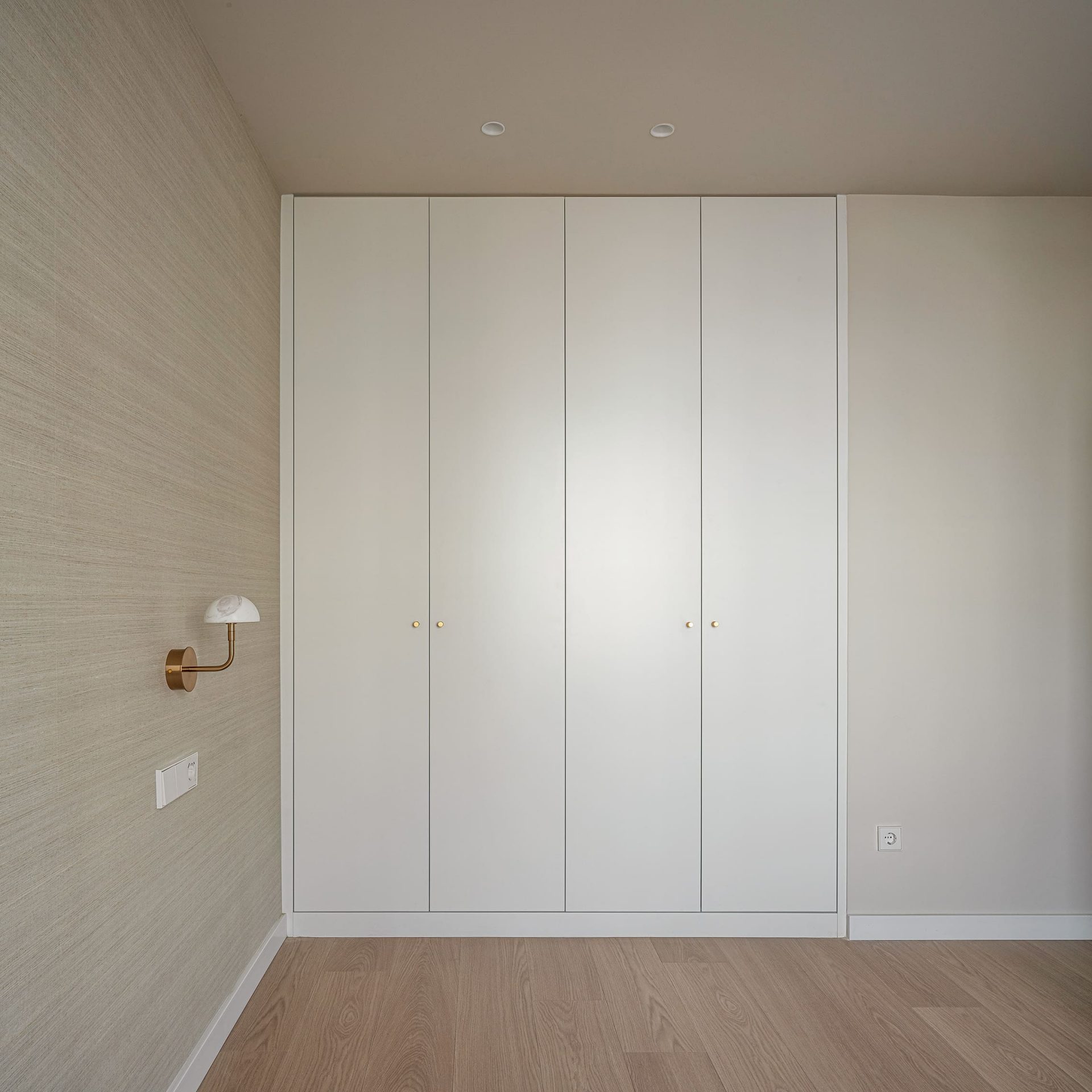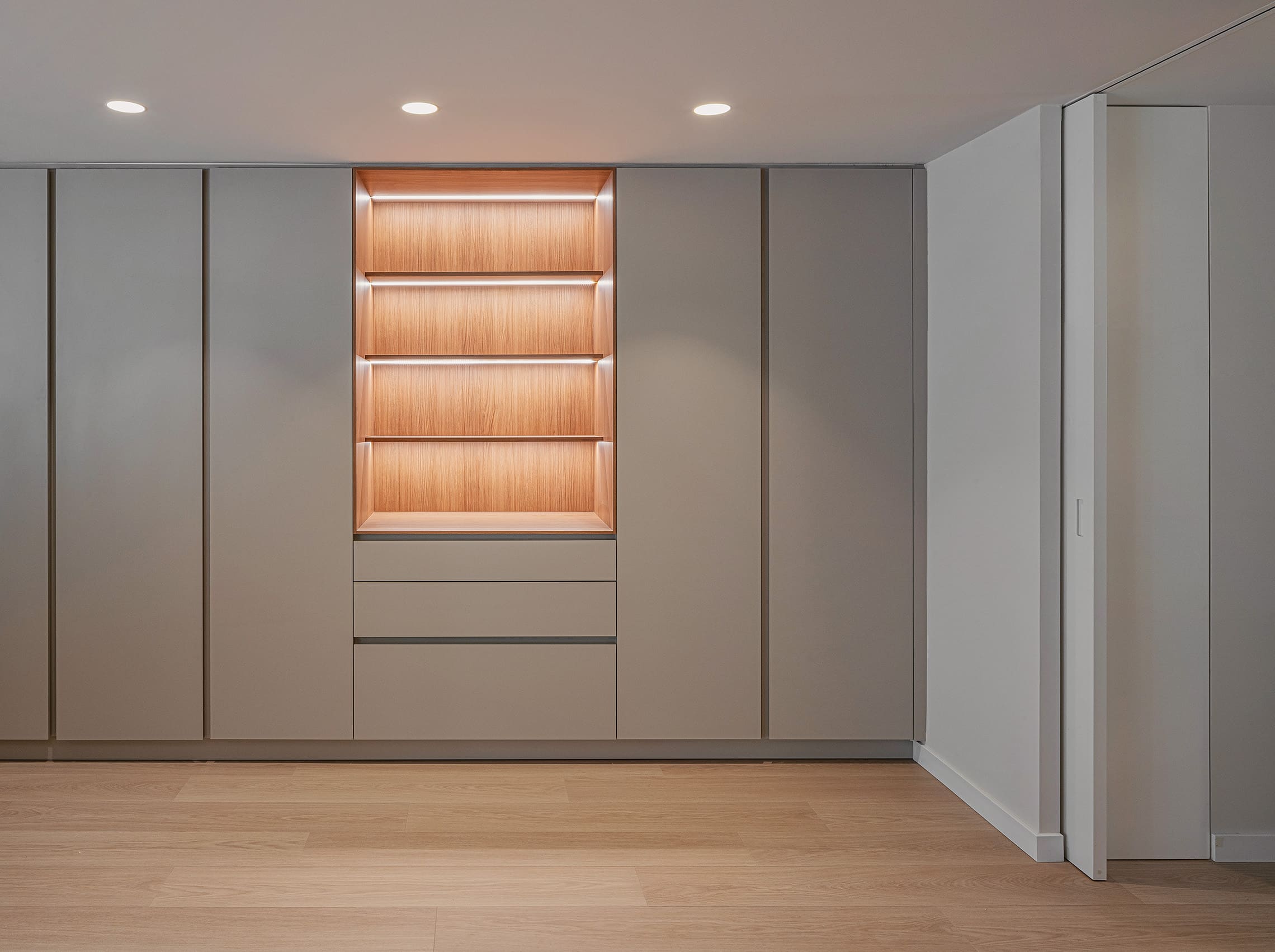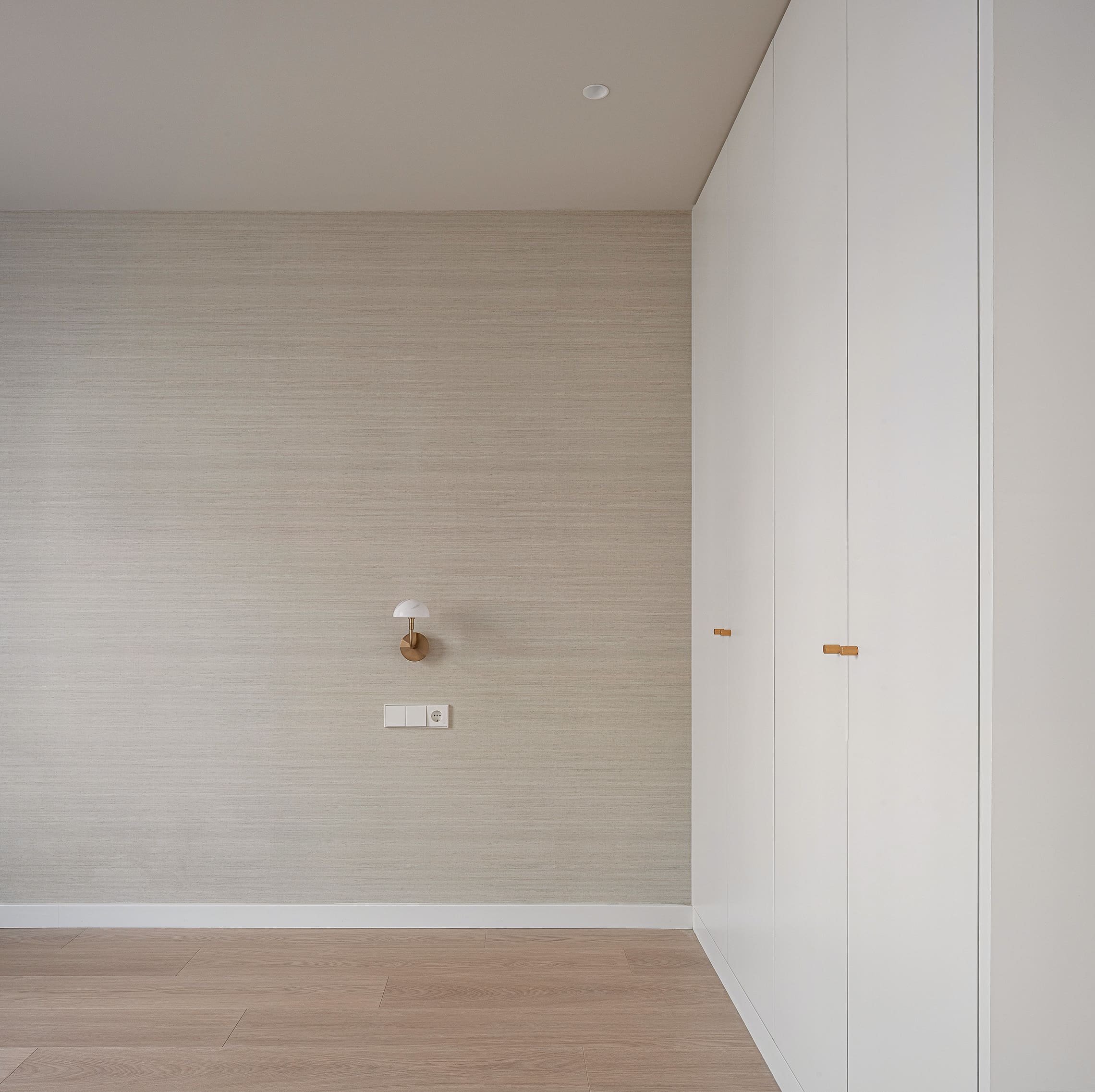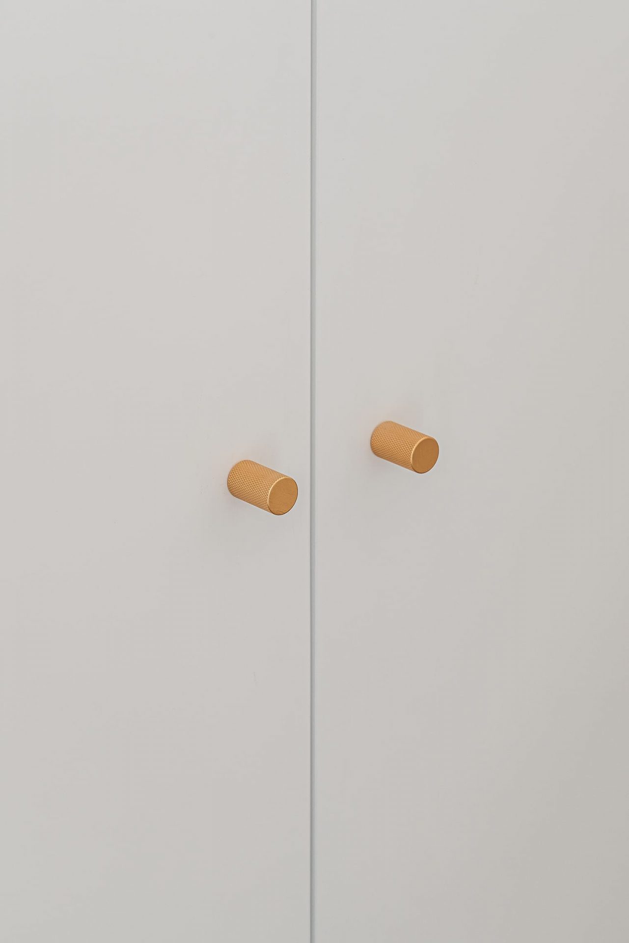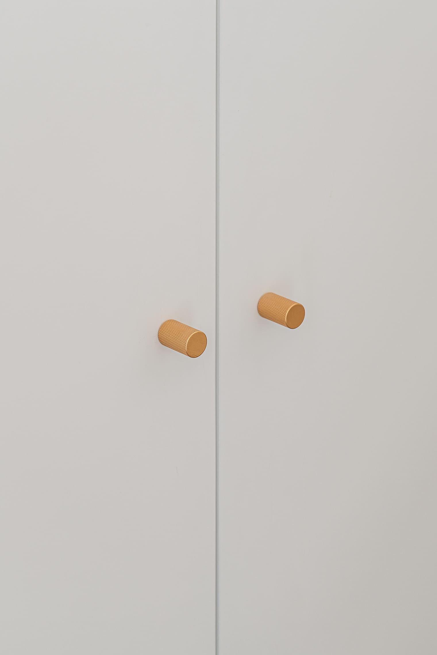 Este mismo lenguaje se traslada a los pomos de los armarios, reforzando la unidad del conjunto.